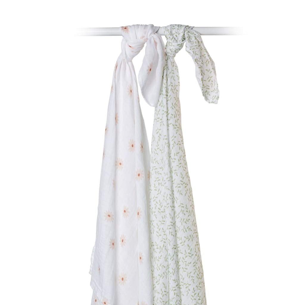 Lulujo Cotton Swaddles - Daisies & Greenery 2pk