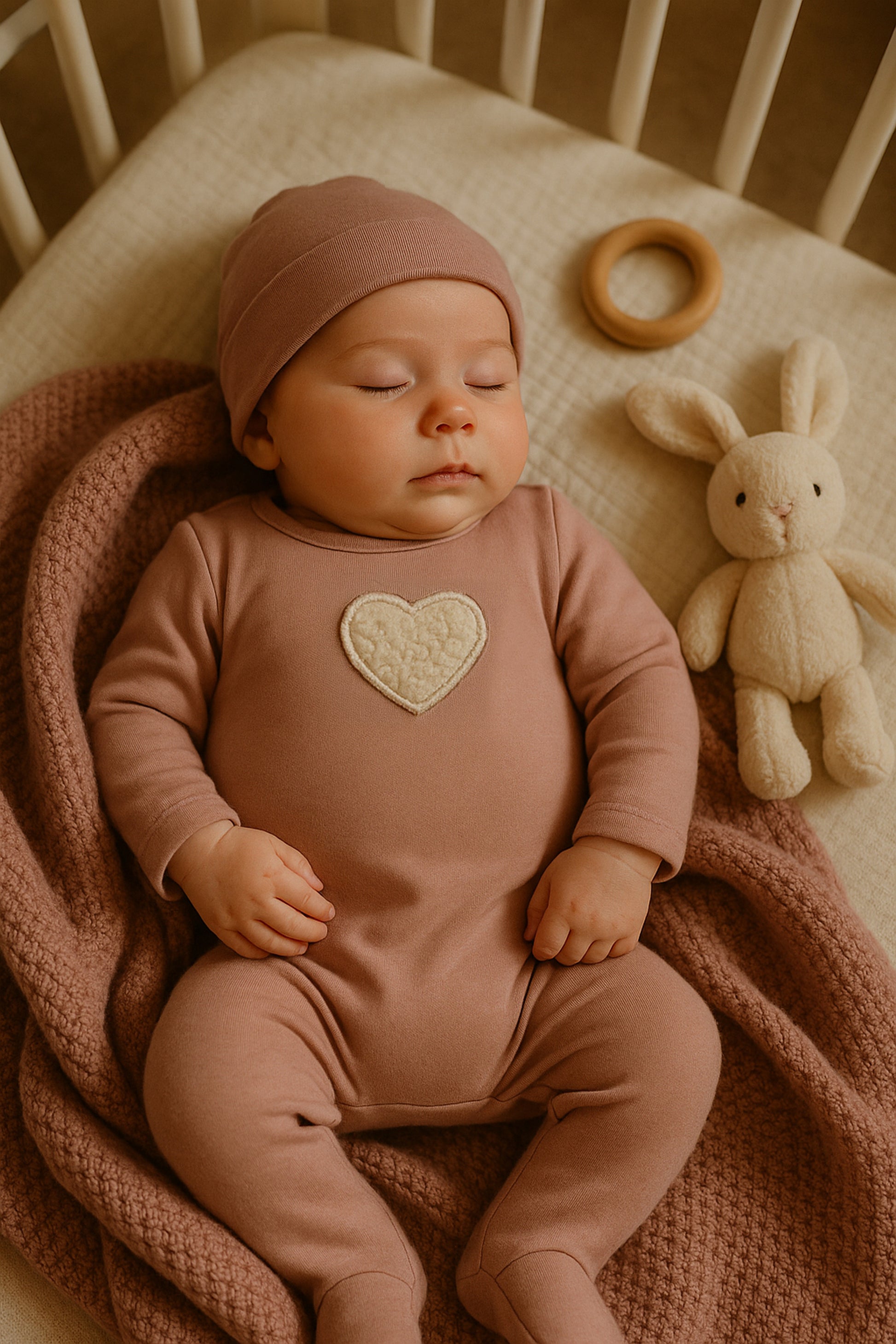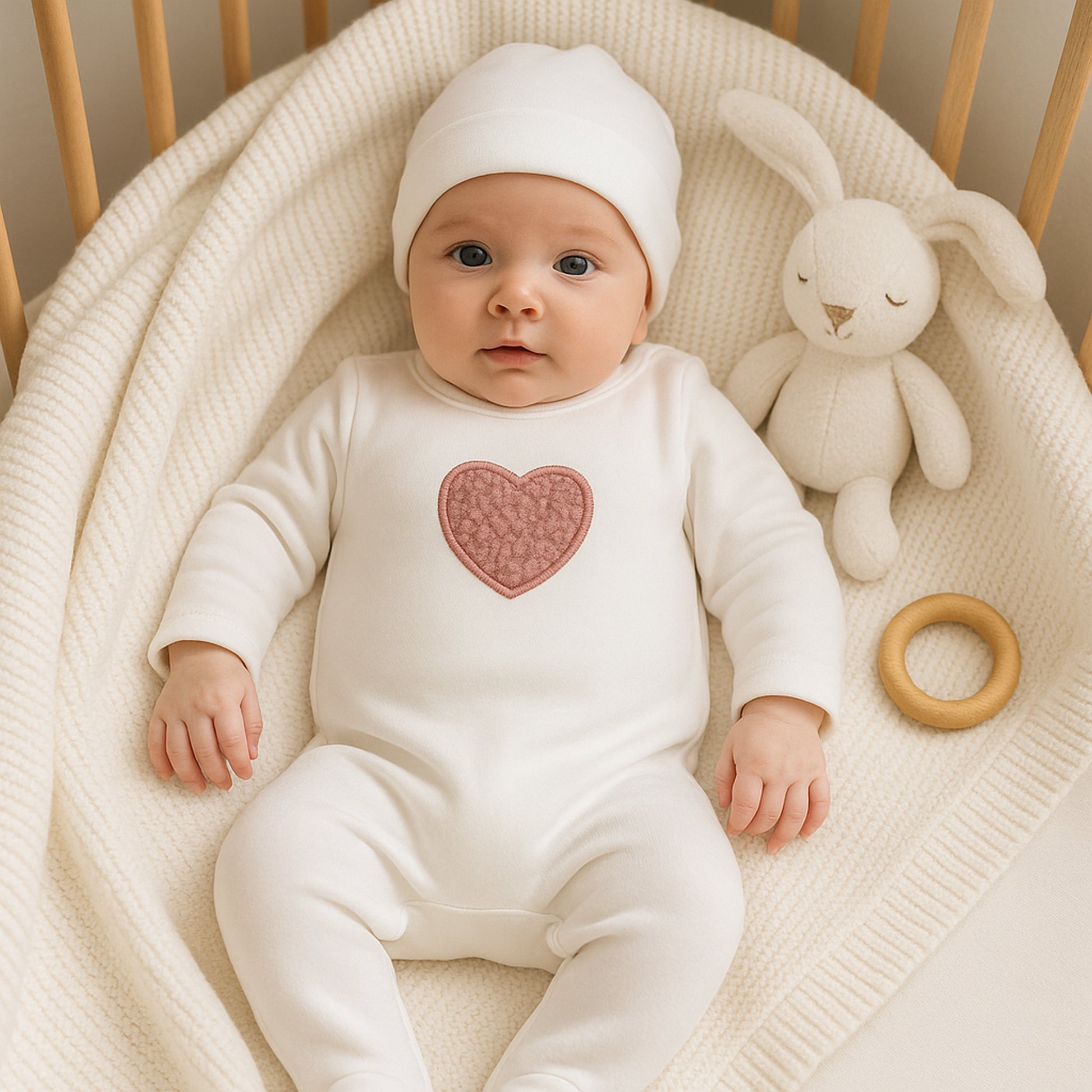 Maniere Sherpa Heart Footie And Beanie